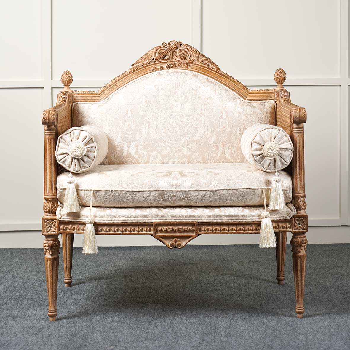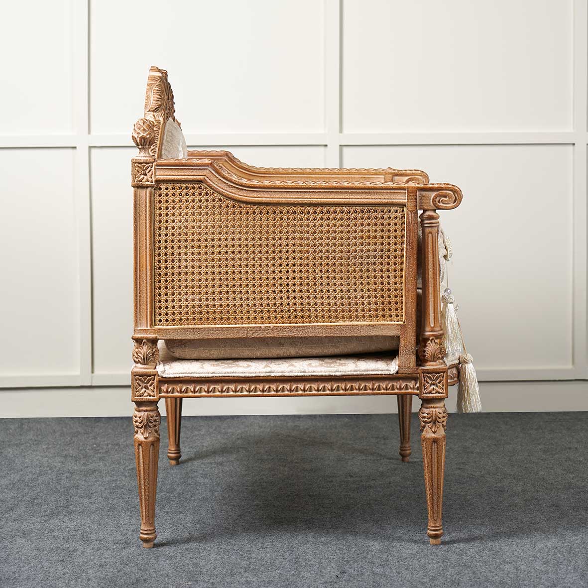 از دیگر نقاط قوت در مبل تک نفره مدل کاجی استفاده از سایز، ابعاد و اندازه ی حرفه ای آن میباشد که توسط طراحان و نجاران به درستی پیاده سازی شده است. همچنین اینکه اگر توجه نمایید از طرح منبت کاری هایی حرفه ای هم به کار رفته است که چشم نوازی کار را چندین برابر کرده است.